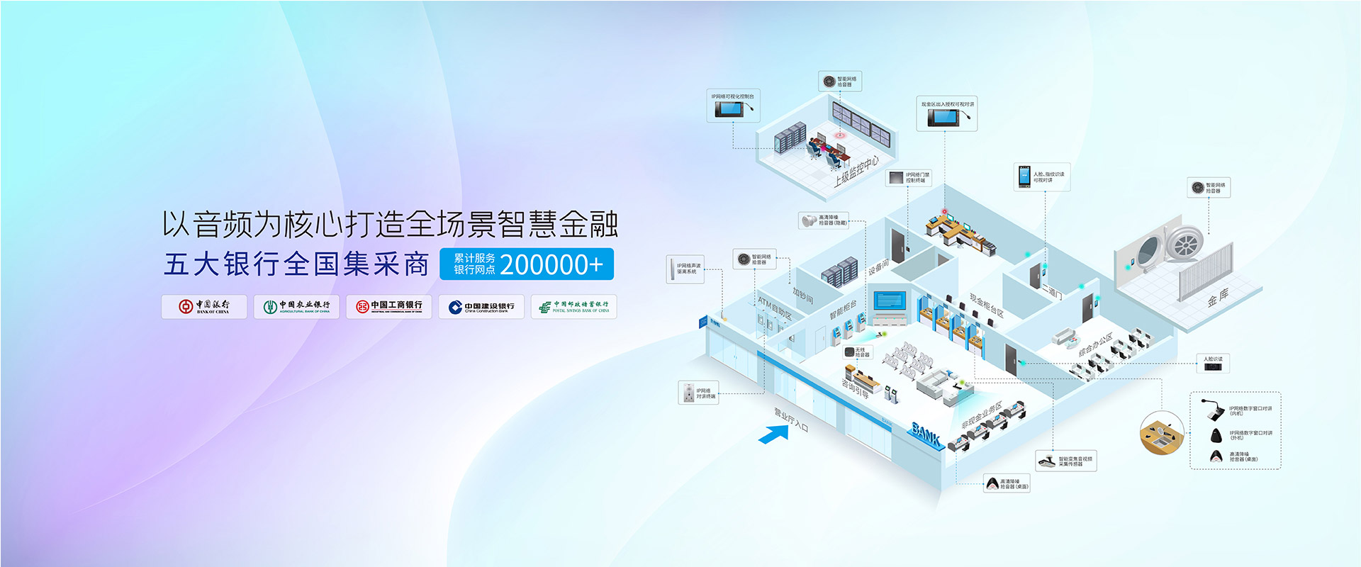 中國農(nóng)業(yè)銀行作為“中國五大銀行”之一的國有商業(yè)銀行,是中國金融體系的重要組成部分。DB真人旗艦是中國農(nóng)業(yè)銀行的總行集采指定供應(yīng)商,為全國多個(gè)銀行網(wǎng)點(diǎn)提供高集成度、高穩(wěn)定性且功能豐富的智能化可視對講系統(tǒng),主要包括窗口對講和ATM機(jī)可視對講,切實(shí)提高銀行安防工作水平,保障銀行安全。